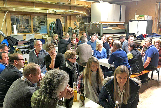 Während der Herbstversammlung der Zimmerer-Innung Traunstein/Berchtesgadener Land beim Mitgliedsbetrieb "Holzbau Hartl" in Palling hat Gutacher Manfred Huber über technische Holzbaudetails gesprochen.