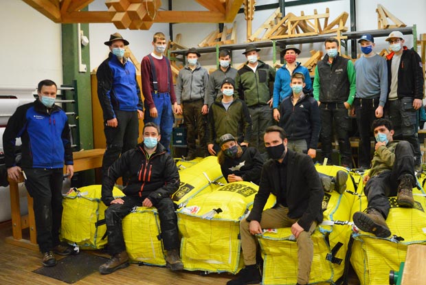Sie sind gelb, bestehen aus Luft und sollen schwere Verletzungen bei Abstürzen aus geringer Höhe verhindern: Über zehn dieser Luftkissen freute sich das Bildungszentrum Weilheim der Handwerkskammer für München und Oberbayern am 3. Dezember 2020. Finanziert und gefördert wird die Aktion aus Mitteln des Bayerischen Zimmerer- und Holzbaugewerbes mit Unterstützung durch die Bayerische Bauwirtschaft.