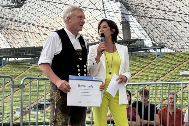 Ehre wem Ehre gebührt: Am 20. Juli wurde Ludwig Hartl, Lehrlingswart der Zimmerer-Innung Traunstein/Berchtesgadener Land für sein außergewöhnliches ehrenamtliches Engagement geehrt. Am „Tag des Ehrenamts“ bekam Hartl im Münchner Olympiapark von Dr. Frank Hüpers, Hauptgeschäftsführer der Handwerkskammer für München und Oberbayern, eine Ehrenurkunde überreicht.